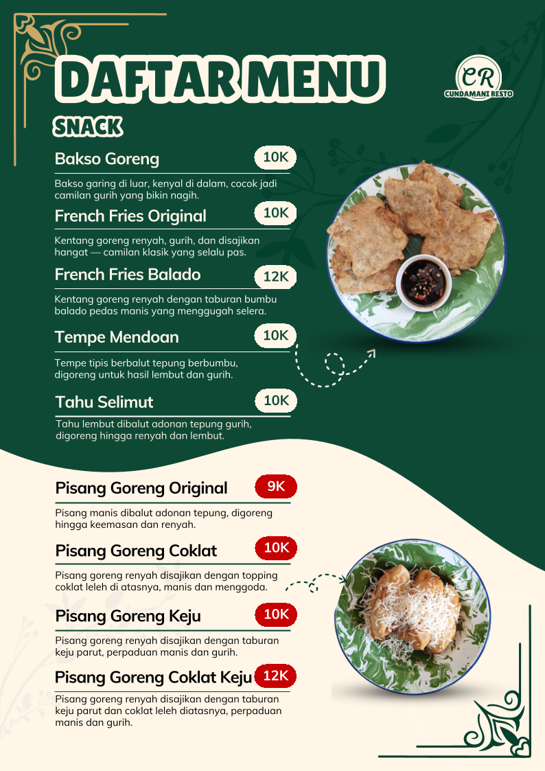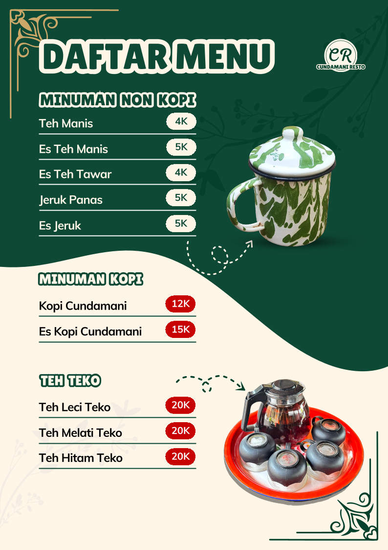 Welcome to Cundamani Resto, a charming dining spot nestled in the heart of Sukoharjo Regency, Central Java. This cozy restaurant showcases a delightful blend of classic and contemporary elements, featuring traditional Joglo-style decor that enchants diners. The menu evokes nostalgic flavors, with a strong highlight on their famous nasi bakar, praised for its perfect seasoning and aromatic goodness. Diners also appreciate the options like lemon grilled fish and hotplate noodles, although some feel that enhancing the seasoning could elevate the experience further. While the atmosphere is perfect for relaxed gatherings, the service times are noted to be moderate. Customer sentiments reflect a desire for bolder flavors and more variety, but the overall dining experience remains enjoyable amid a tranquil ambiance. Cundamani Resto promises a unique blend of taste and nostalgia, inviting you to savor a memorable meal with friends and family.